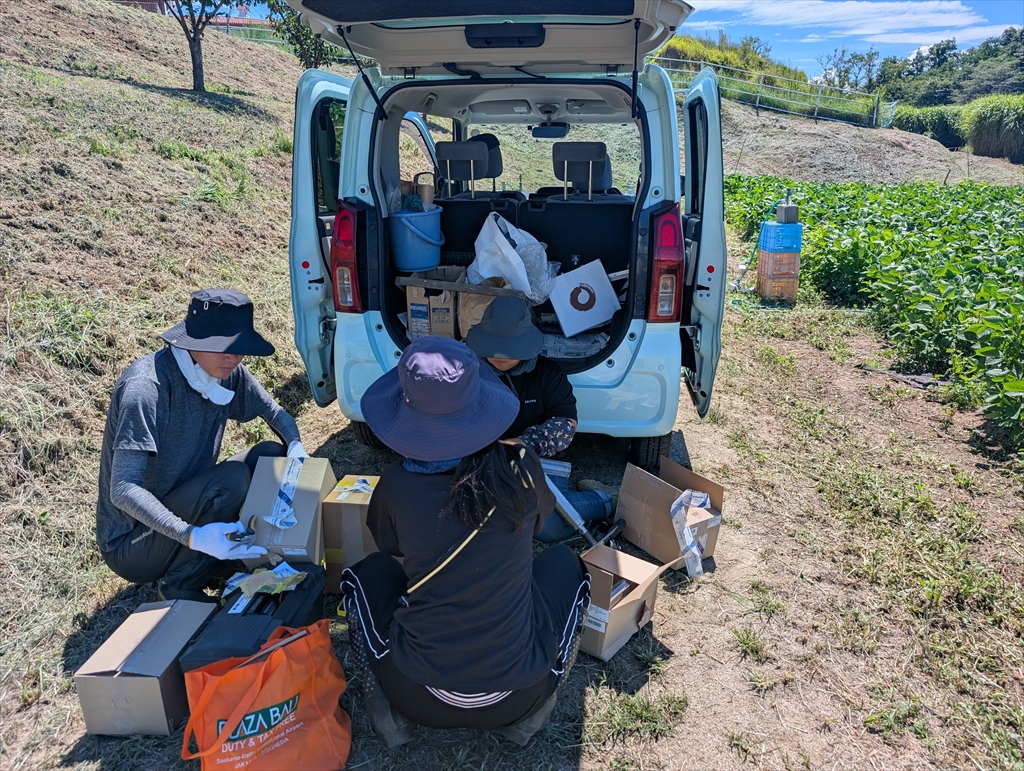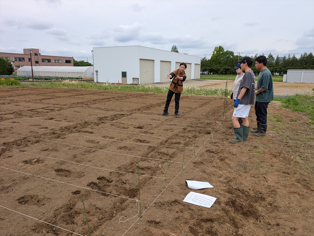 共同研究先の方にもお越しいただき,iFCテンサイ圃場の準備をおこないました。M2熊本君が全て取り仕切っています。頼もしい。