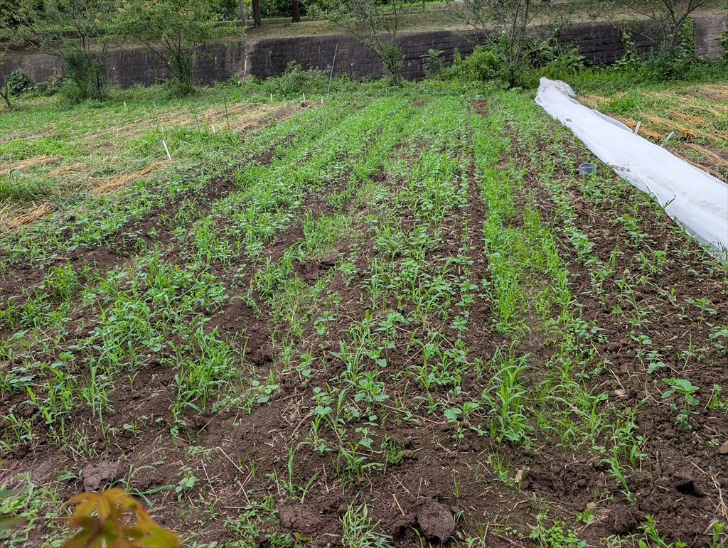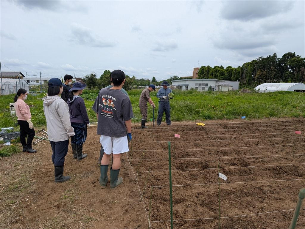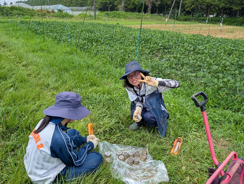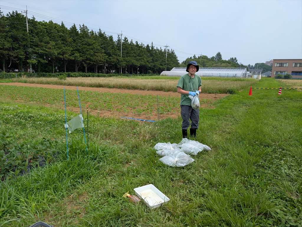 西澤研M2の澤木さんの圃場です。B4大山君のテーマとしても取り組ませて頂く予定です。最初は慣れない作業に戸惑いが見られましたが,慣れてくると細かいことはどうでもよくなってくるので,最初の設計が大事です。