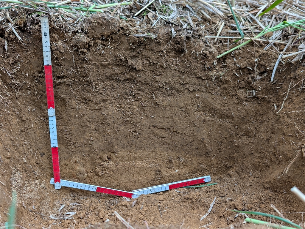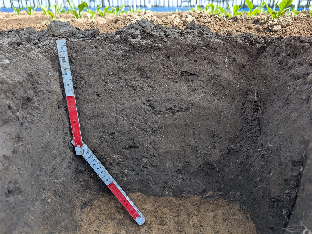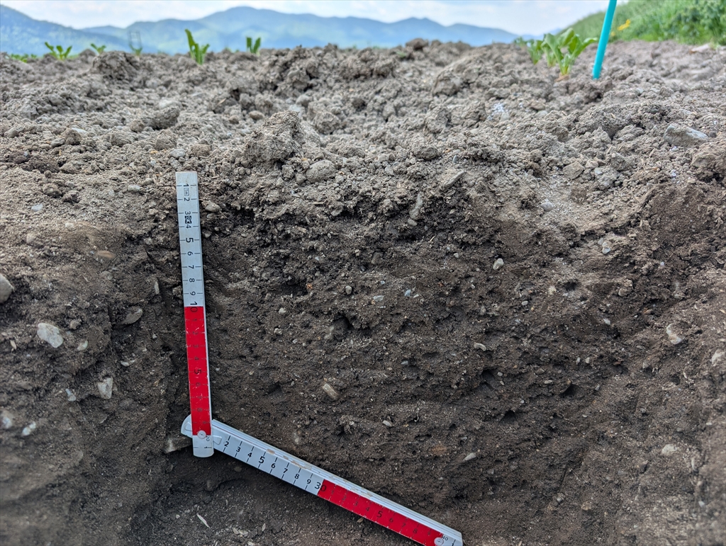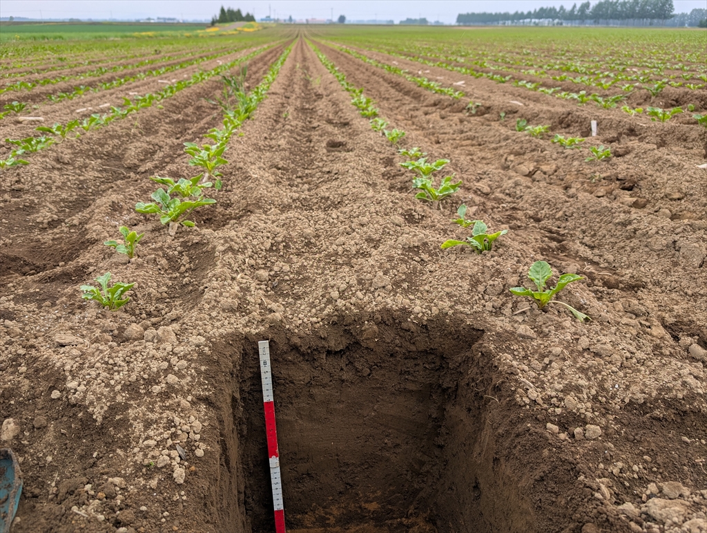 テンサイプロジェクトの共同研究先の芽室へ。実際に農家さんの圃場でもDSE接種試験を展開していて,2日目は富良野,由仁を巡りました。芽室近辺ではいずれの圃場も40-50cm程度の黒色土層の下に褐色の下層土が見られ,母材の堆積と土壌生成の関係を感じることができました。