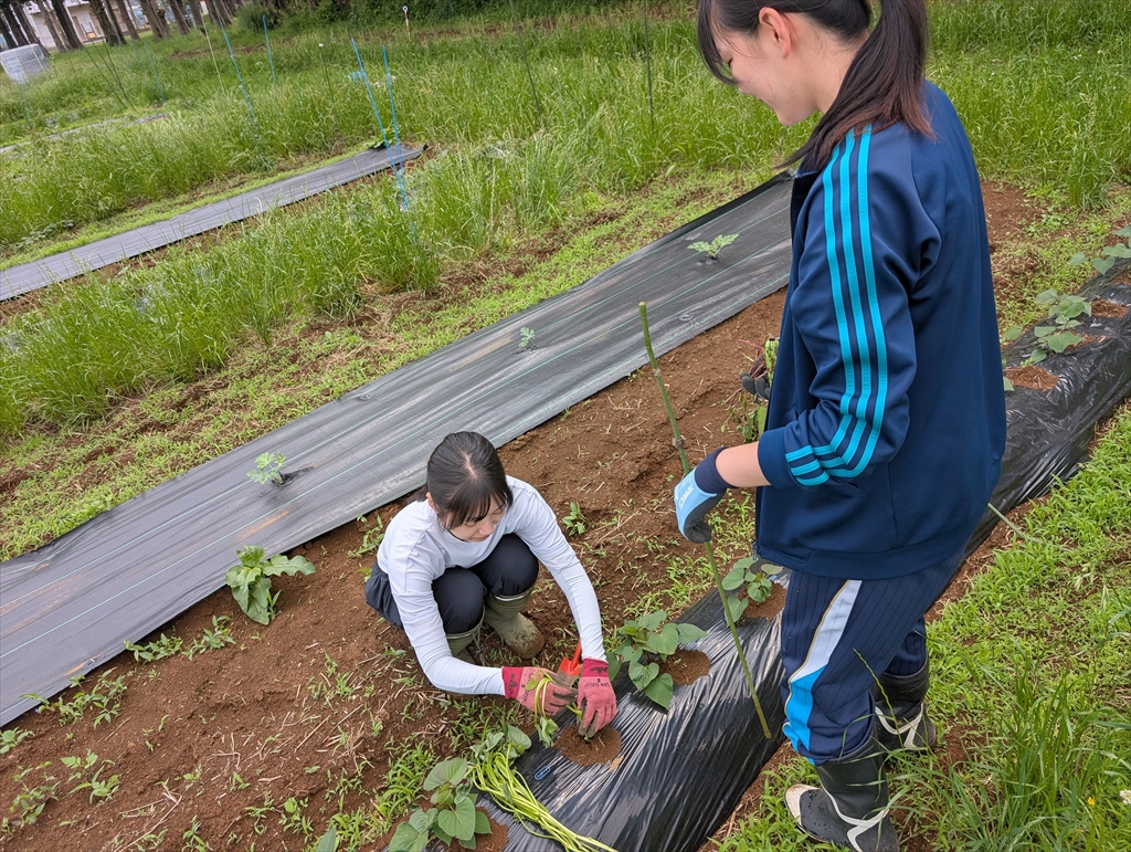サツマイモのセンチュウ防除関係の共同研究で,小松崎先生が主導するプロジェクトで一部ご一緒させて頂いています。B4青木さんと,小松崎研の新岡さんが定植をおこないました。