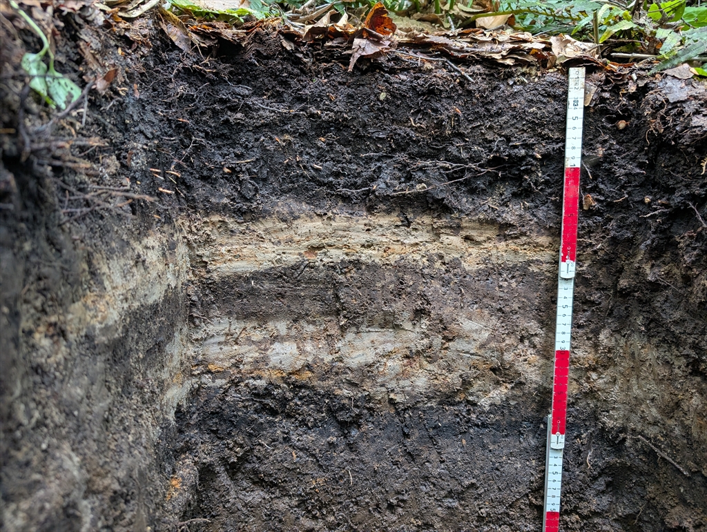 菌核の聖地,麻平へ。M1船津丸君の調査で,M2熊本君もヘルプで参戦していただきました。美しい2枚のテフラと,埋没表層。そこに含まれている有機物を対象に研究をしていくはずです。後泊は関温泉のせきぜんさんで13年振りに宿泊。翌日から別のオーナーに引き渡されるとのことで,最後の一晩を過ごさせていただきました。