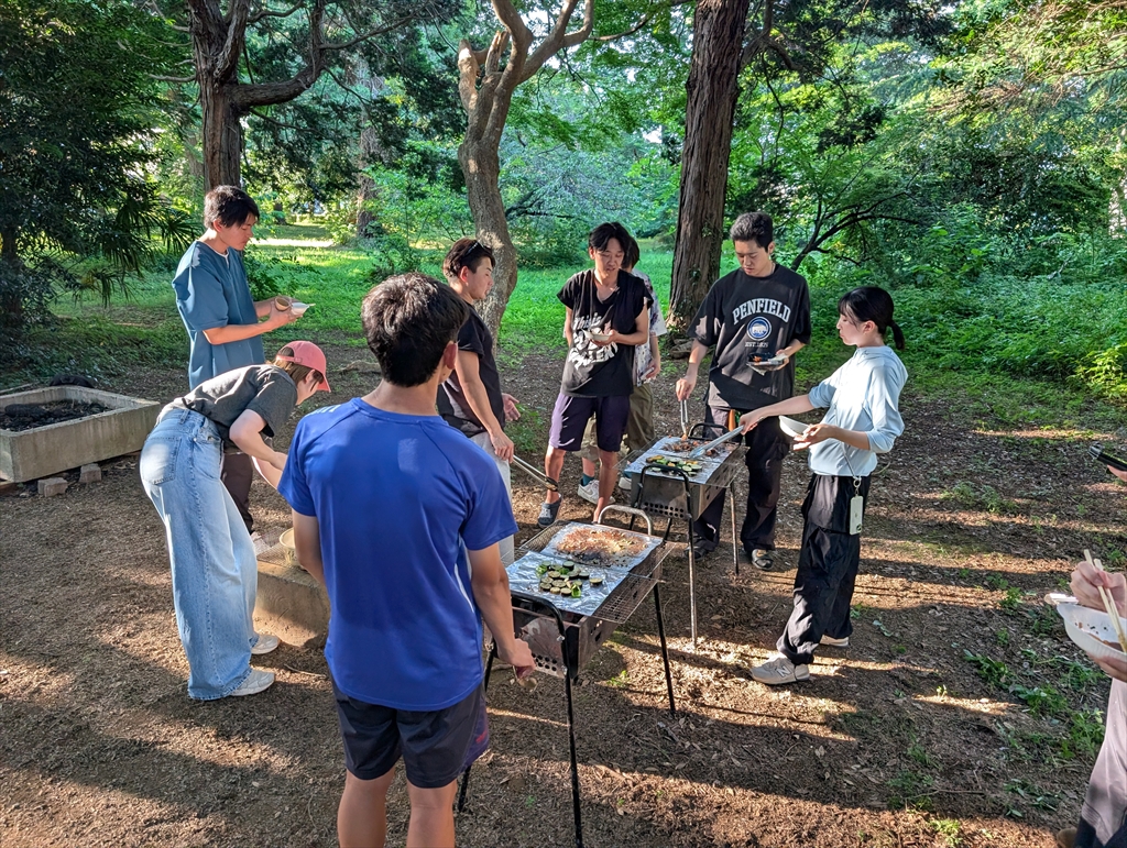 海の日,少しスポーツをしてからバーベキュー。研究室配属が決定した3年生も,ちょっと早いですが来てくれました。