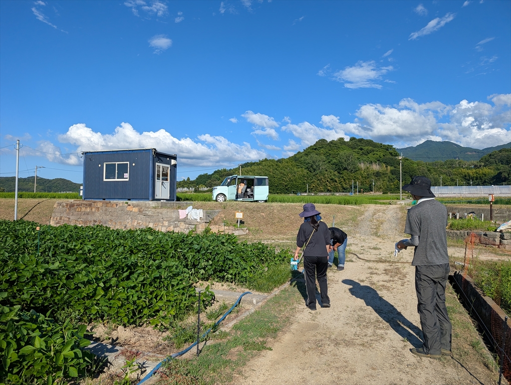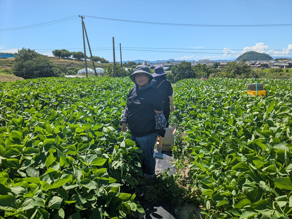 枝豆は早くも収穫が近づいています。土壌分析用のサンプリングをM2豊田さん中心に実施しました。