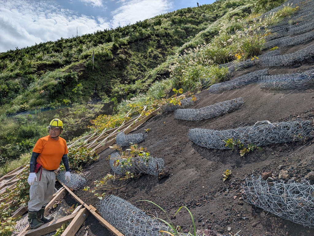 今回は低標高のスコリア質未熟土や,標高の高いスダジイ林など,筑波大の上條先生のお力添えもあり,サンプリングとしては充実していました。ただ,旧牧場のススキ-ヤシャブシ林で帰路を見失い,危うく遭難するところでした。危なかった。。。途中,上條先生の土石流軽減&植生回復プロジェクトのサイトも見学させていただき,三宅調査の成熟具合を感じることができました。