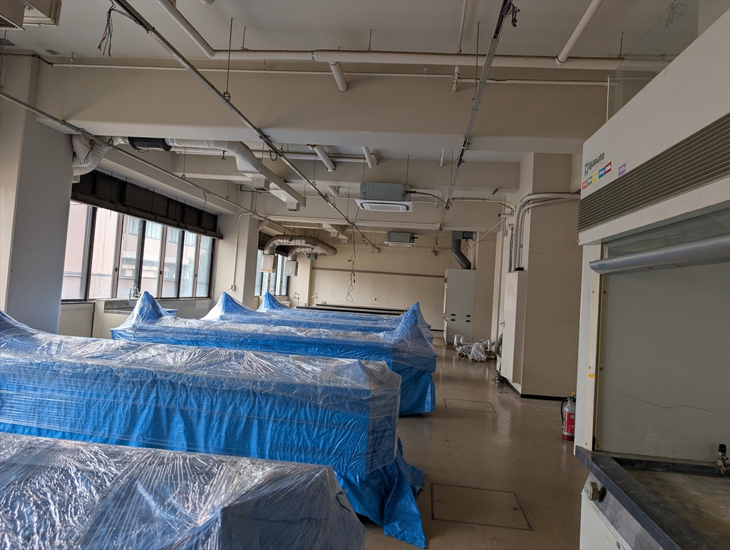 今年度から実験研究棟の回収工事が始まり,教員居室も強制移動となりました。見慣れた光景が変わっていくのはなかなか面白く,改修後の仕上がりが楽しみです。みなさんお疲れ様です。